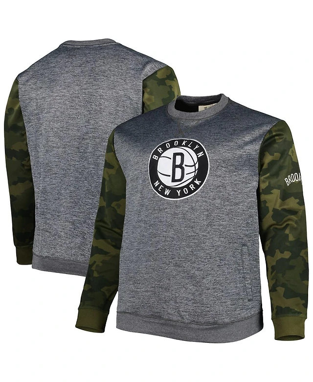 Men's Fanatics Heather Charcoal Brooklyn Nets Big and Tall Camo Stitched Sweatshirt