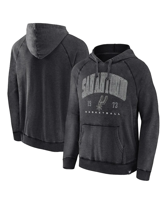 Men's Fanatics Heather Charcoal Distressed Portland Trail Blazers Foul Trouble Snow Wash Raglan Pullover Hoodie