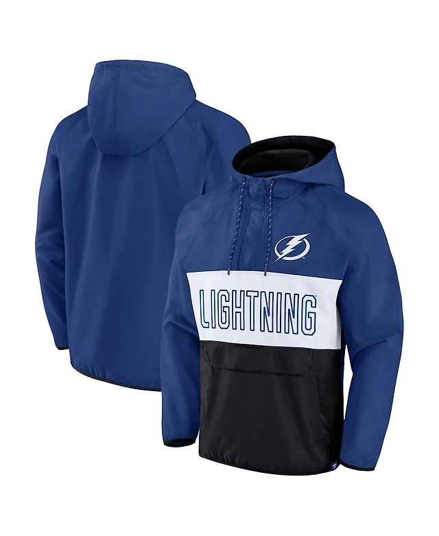 Men's Fanatics Blue, Black Tampa Bay Lightning Backhand Shooter Defender Anorak Raglan Hoodie Quarter-Zip Jacket