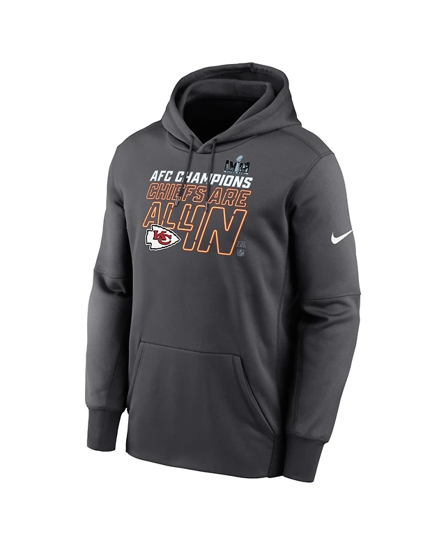 Men's Nike Anthracite Kansas City Chiefs 2023 Afc Champions Locker Room Trophy Collection Pullover Hoodie