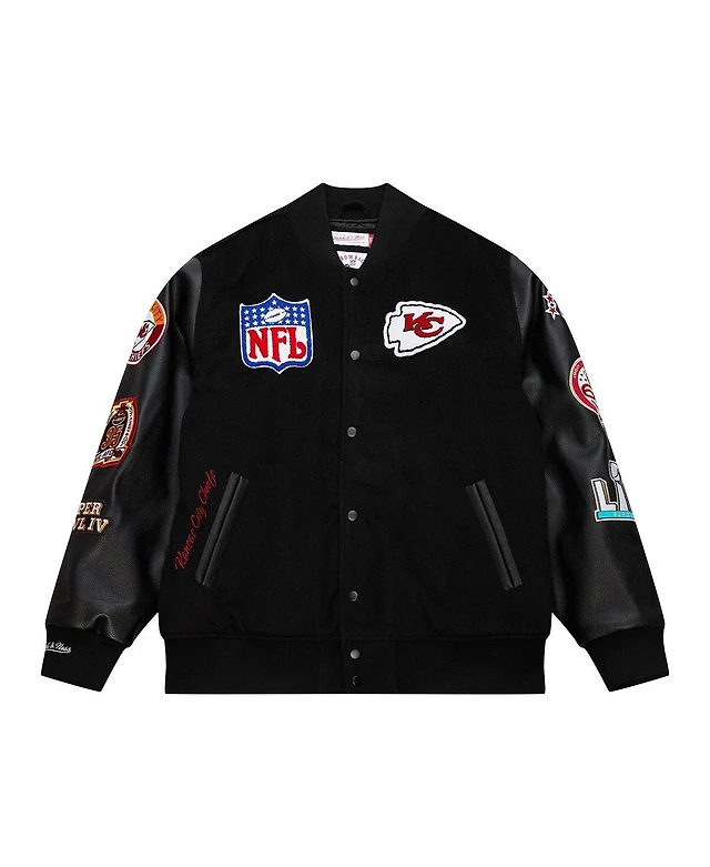 Mitchell & Ness Men's Black Kansas City Chiefs Blackout Collection Vintage Logo Full-Snap Varsity Jacket