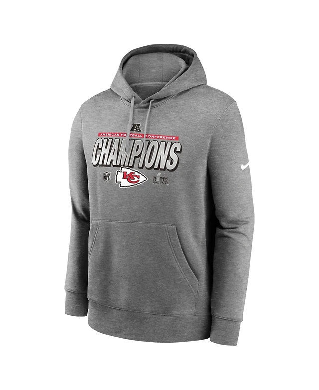 Nike Men's Heather Charcoal Kansas City Chiefs 2024 Afc Champions Locker Room Trophy Collection Pullover Hoodie