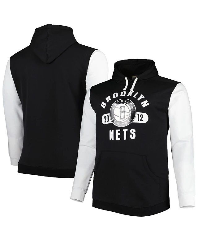 Men's Fanatics Black, White Brooklyn Nets Big and Tall Bold Attack Pullover Hoodie