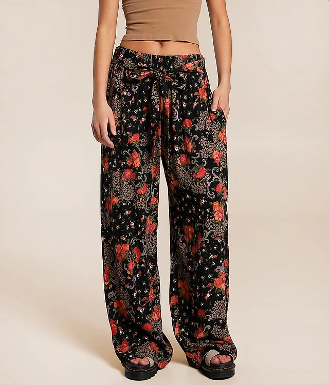 EMBROIDERED FLORAL TWILL BALLOON PANTS