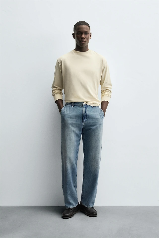 PLEATED WIDE FIT DENIM CHINO PANTS