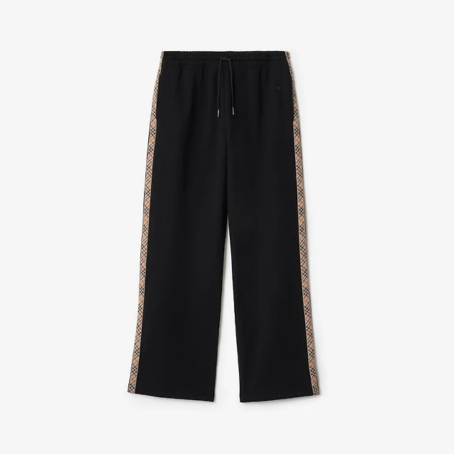 Check Trim Cotton Track Pants in Chalk white - Women | Burberry® Official