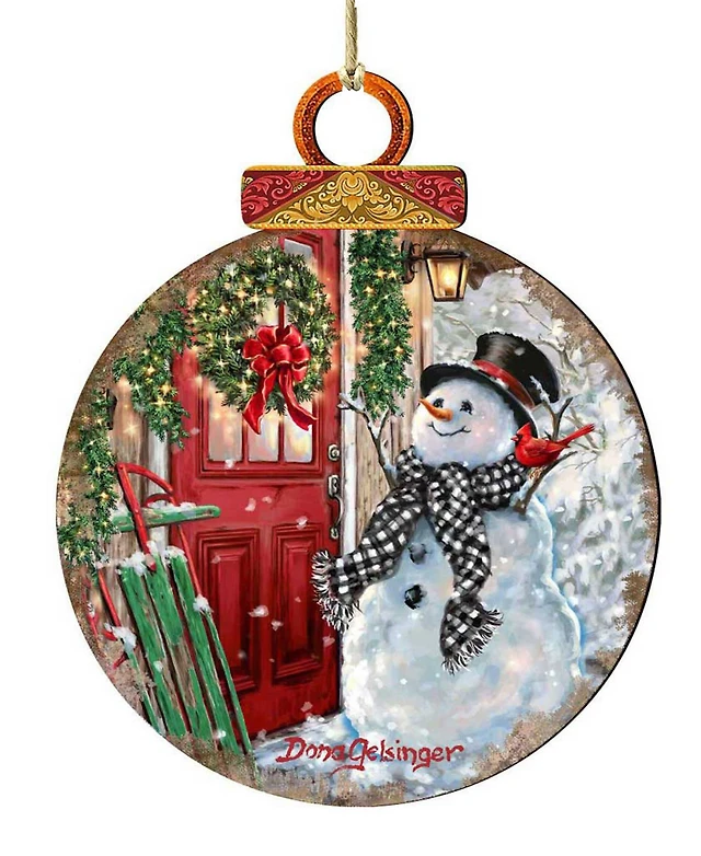 Designocracy 2 Piece Cowboy Snowman Wood Ornaments Set