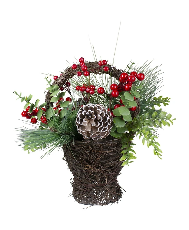 15" Eucalyptus Pine and Berry Artificial Christmas Grapevine Basket