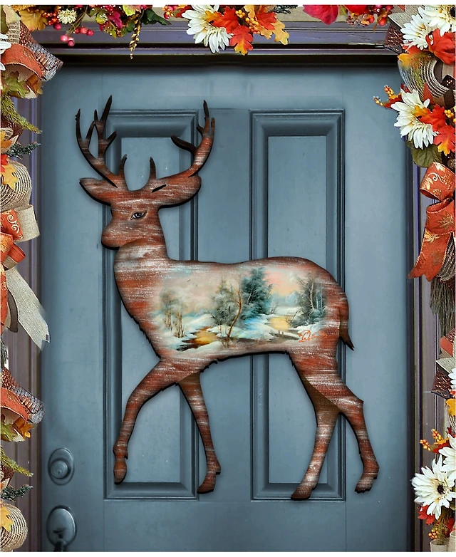 Designocracy Christmas Woodsy Deer Scenic Wooden Decorative Door Hanger