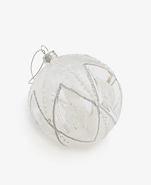 Holiday Lane Iced Delight White Glitter Decor Ball Ornament, Macy's Exclusive