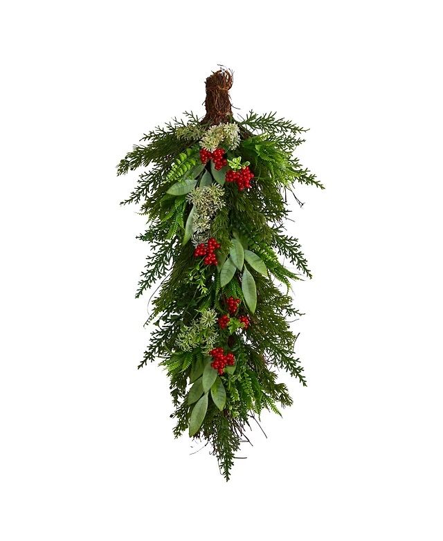 Glitzhome 31.5" Greenery Polyethylene Christmas Dripping Teardrop