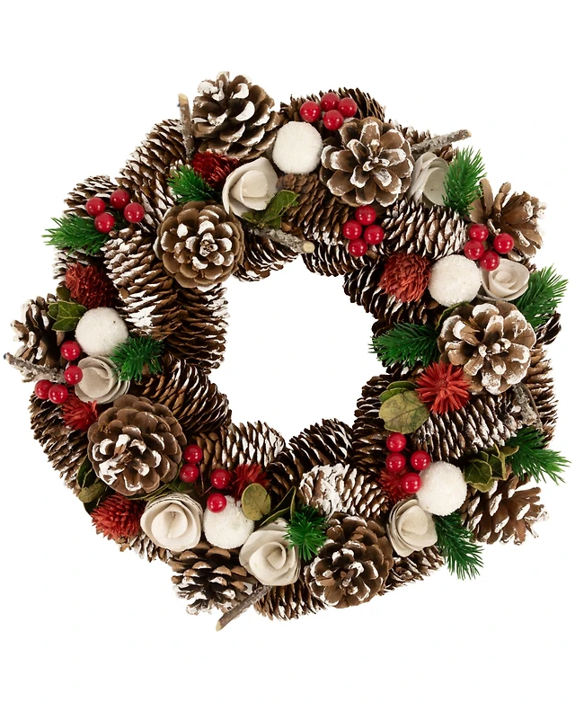 Nearly Natural Snowed Pinecone Artificial Christmas Wreath with 35 Clear Led Lights