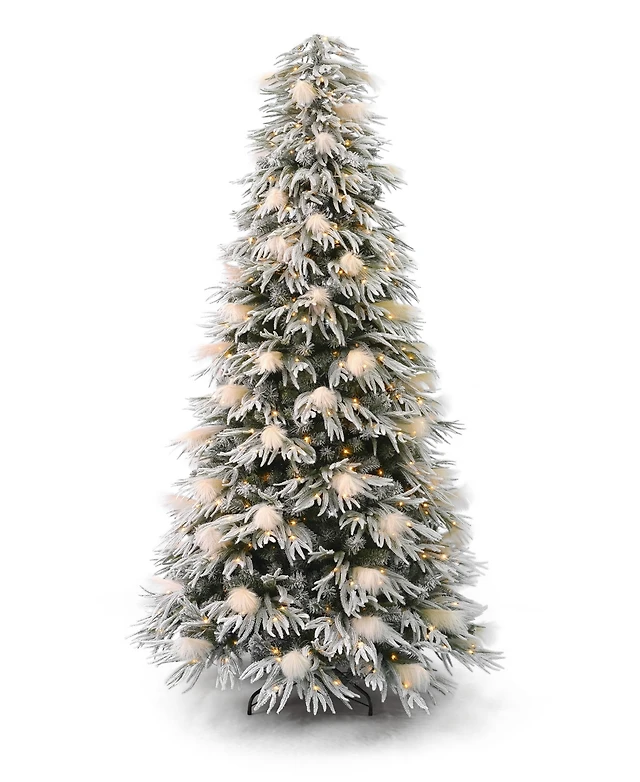 Glitzhome Pre-Lit Flocked Pencil Fir Artificial Christmas Tree with 600 Warm White Lights, 9'