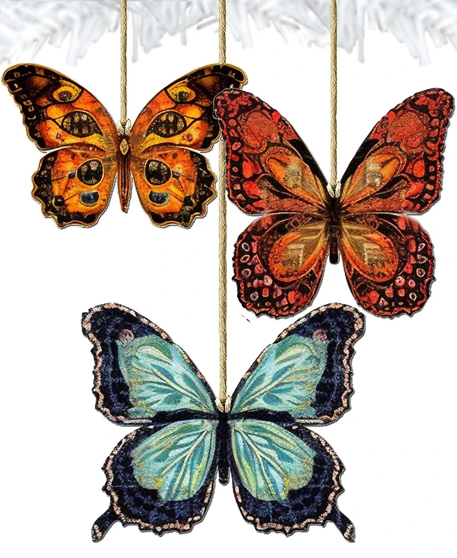 Designocracy Summer Butterfly Wooden Ornaments, Set of 3