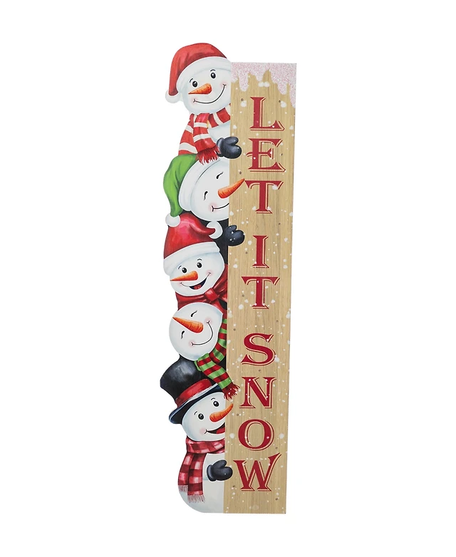 Glitzhome 41.75" Lighted Wooden Christmas Let It Snow Stack Snowman Porch Decor