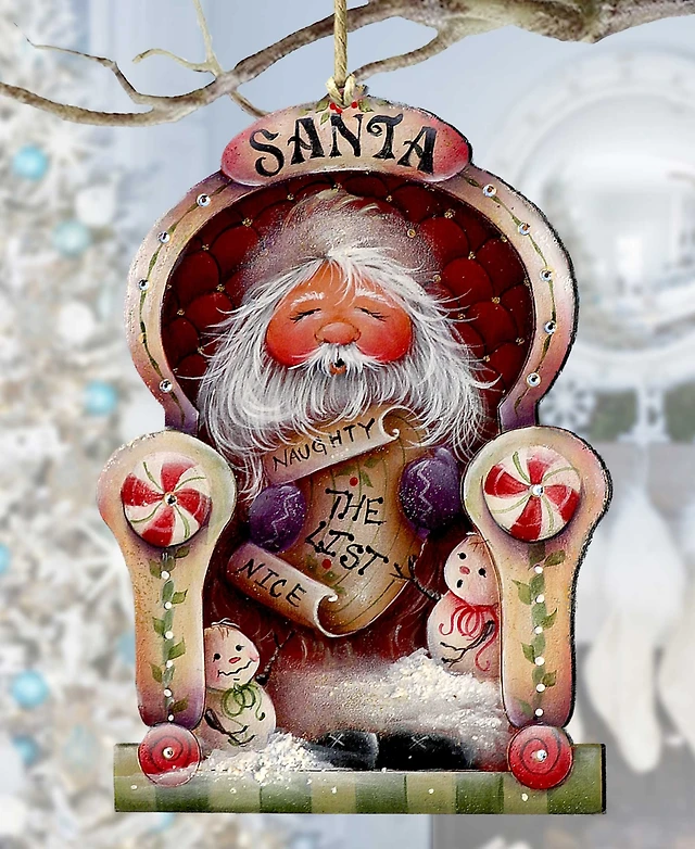 Designocracy Santa Clause Themed Wooden Christmas Tree with Ornaments Set of 13 G. DeBrekht