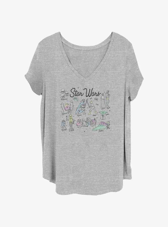 Star Wars Doodle Collage Girls T-Shirt Plus Size