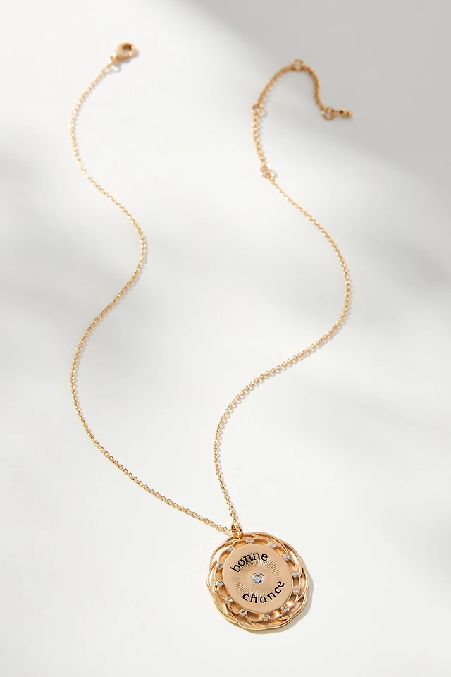 Ettika 18K Gold Plated Iridescent Shell Circle Pendant Adjustable Necklace