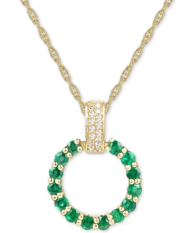 Effy Emerald (1-7/8ct. t.w.) & Diamond (1/6 ct. t.w.) Cluster Polished Circle 18" Pendant Necklace in 14k Gold