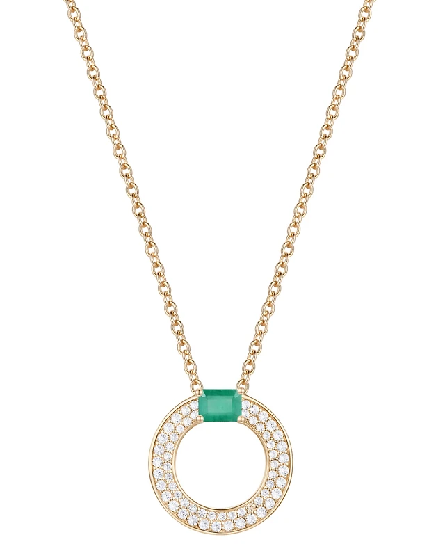 Cubic Zirconia Baguette and Round Sterling Silver Open Circle Necklace (Also 14k Gold Over or Rose Silver)