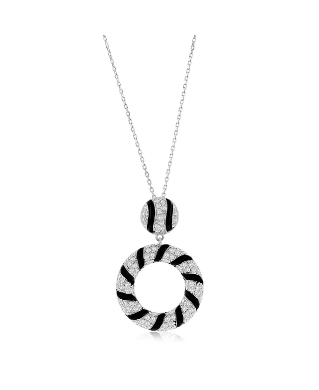 Sterling Silver White Gold Plated Cubic Zirconia Double Outlined Circle Neckalce