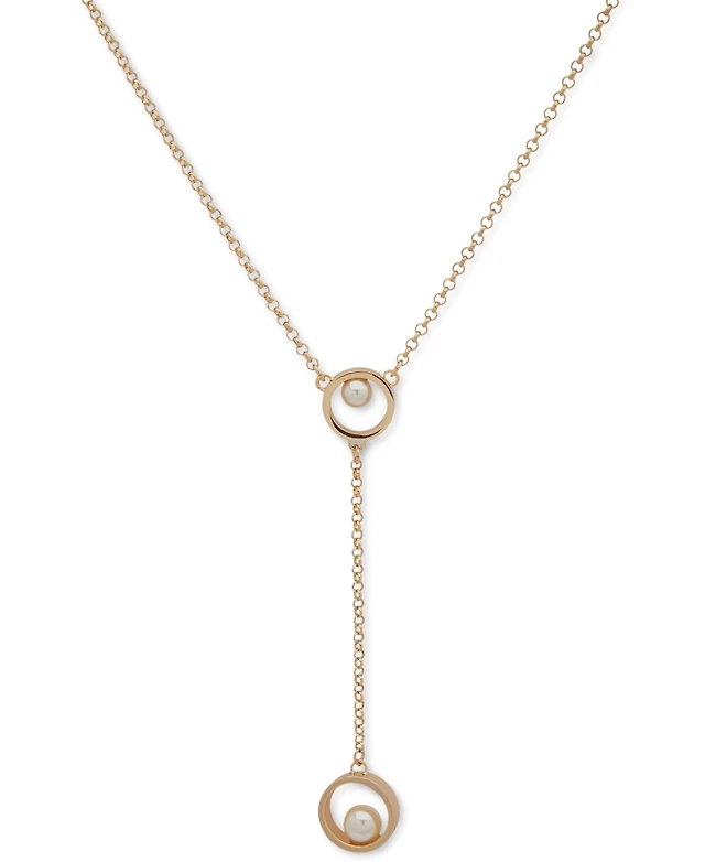 Karl Lagerfeld Paris Gold-Tone Imitation Pearl Lariat Necklace, 16" + 3" extender