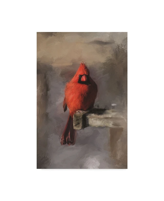 Lois Bryan 'Bright Red Cardinal on a Perch' Canvas Art - 12" x 19"