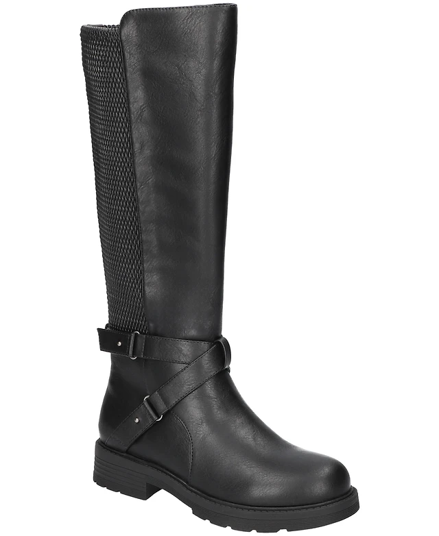 Journee Collection Women's Jester Wide Calf Rouched Buckle Mid Shaft Boots