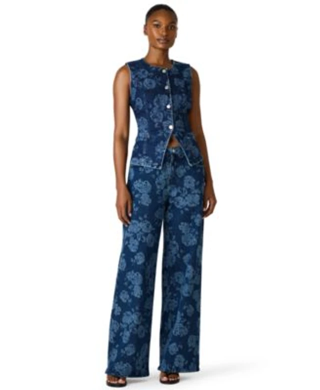 Elle Collection Women's Rhinestone Pocket Jean Wide-Leg Pants