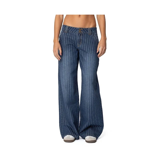 Women's Foldover Waist Jeans With Row Hem And Distressed Details