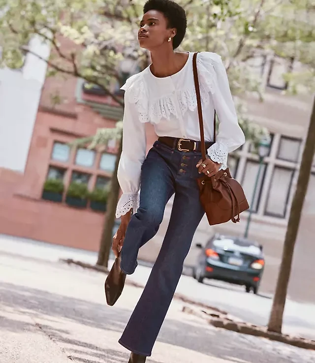 Ann Taylor The Patch Pocket Flare Jean Cappuccino Tan Women's