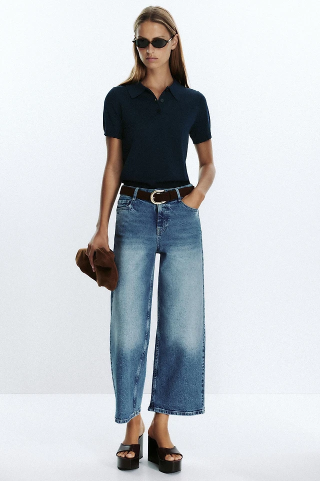 TRF LOW RISE RIPPED WIDE LEG JEANS