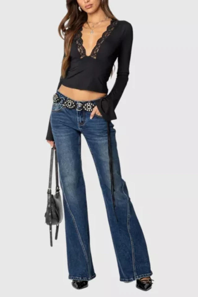 Ultra Low-Rise Medium Wash Flare Jeans