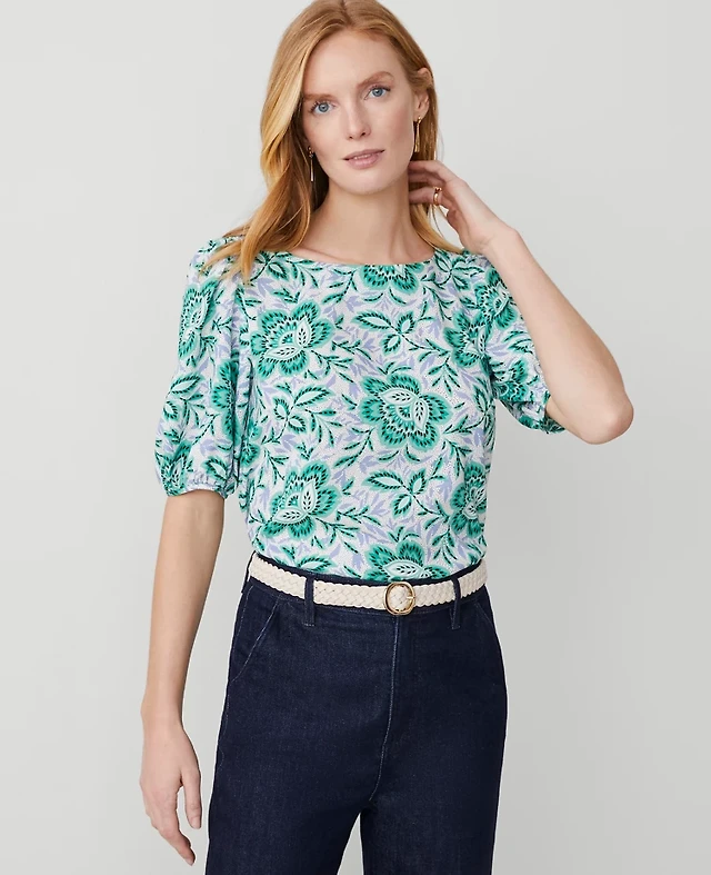 Ann Taylor Floral Boatneck Popover Top Mellow Mint Women's
