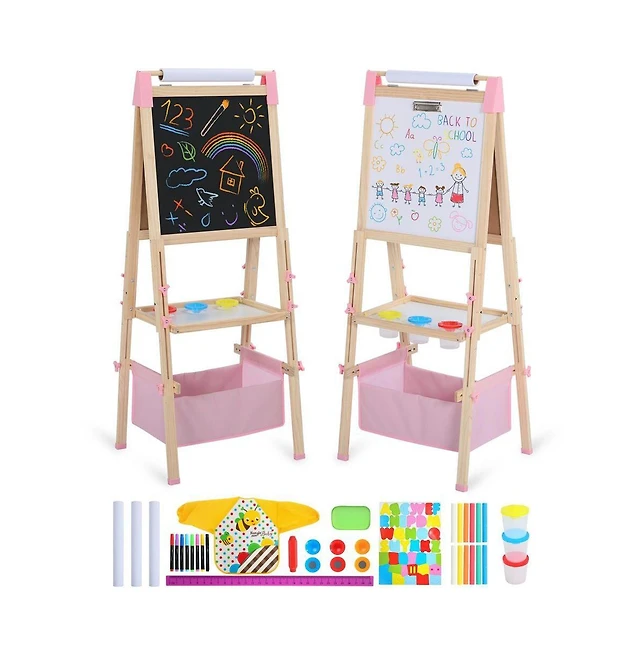 Height Adjustable Kids Art Easel Magnetic Double Sided Board w/ Accessories