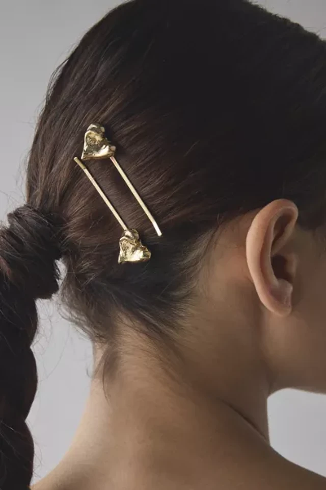 Heart Metal Slide Barrette Set