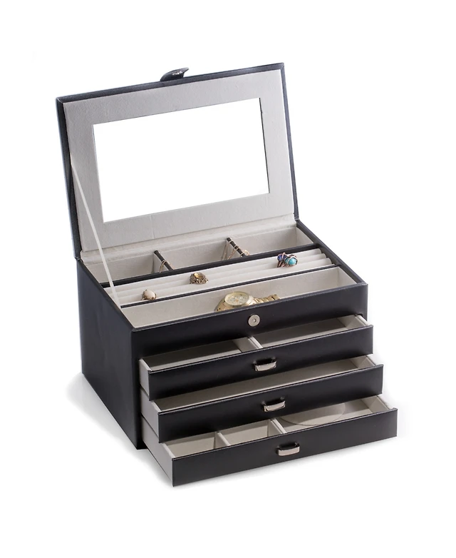 Bey-Berk 4 Level Jewelry Box with Multi Compartments