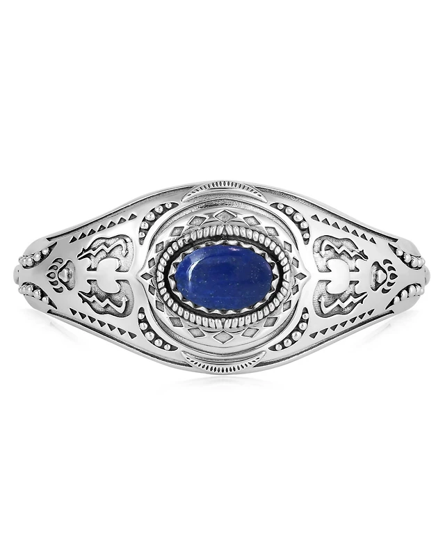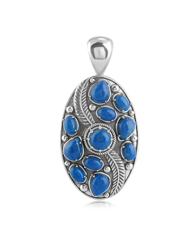 American West Jewelry Sterling Silver Lapis Cluster Gemstone Oval Pendant Enhancer