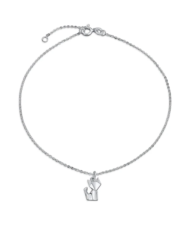 Bling Jewelry 3D Geometric Origami Jewelry Animals Pet Cat Kitten Anklet Small Charm Dangle Ankle Bracelet Sterling Silver Adjustable 9 To 10 Inch