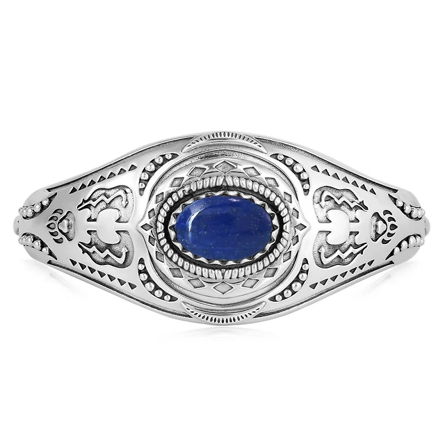 American West Jewelry Sterling Silver Oval Denim Lapis Oval Cut Beaded Toggle Bracelet Size Large
