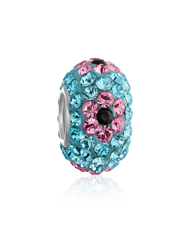 Bling Jewelry Floral Spring Flower Crystal Aqua Black White Spacer Bead Core .925 Sterling Silver
