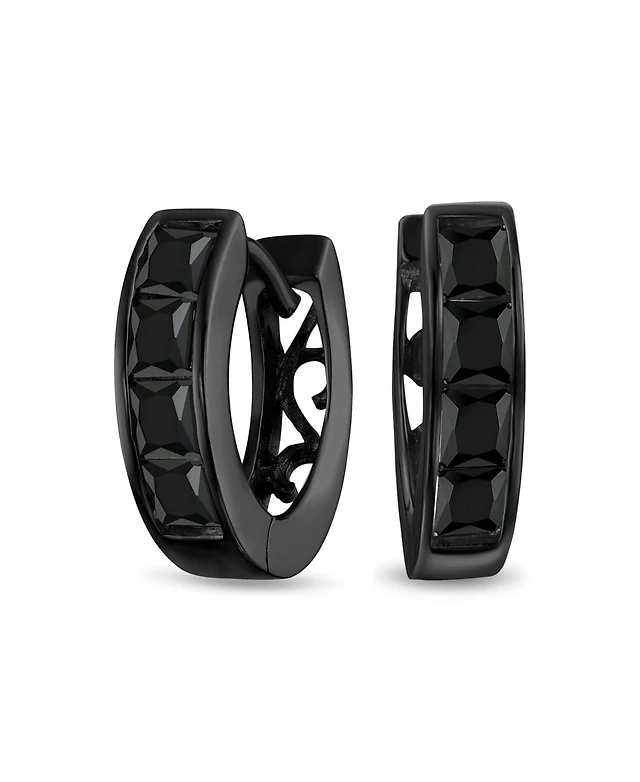 Bling Jewelry Black Square Shaped Cubic Zirconia Micro Pave Cz Kite Stud Earrings Black Plated .925 Sterling Silver