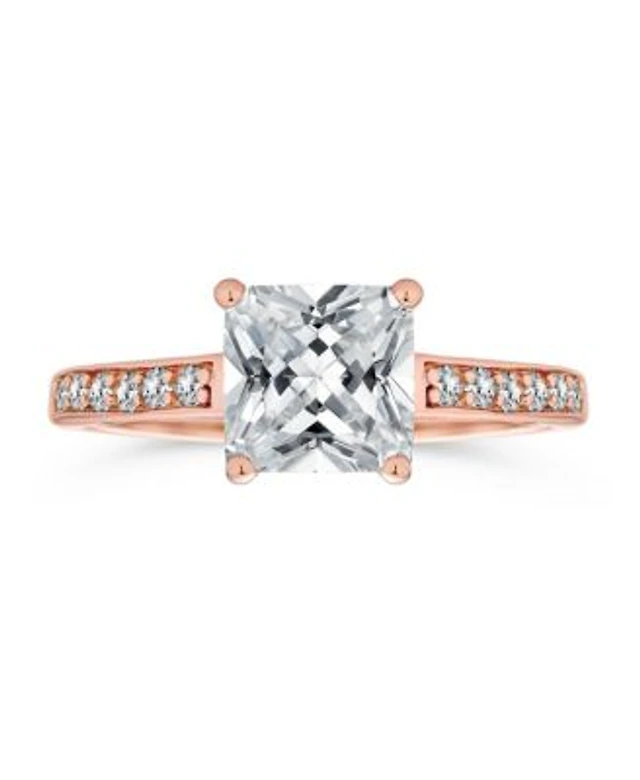 Bling Jewelry Classic 2.5CT Princess Cut Cz Solitaire Promise Ring with Pave Side Stones Rose Gold Plated Sterling Silver