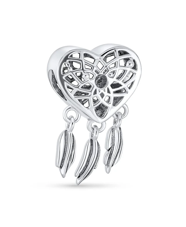 Bling Jewelry Hopes Dreams Heart Spiritual Amulet Symbol Dream Catcher Dangle Charm Bead Tassel Feather Leaves Sterling Silver Fits European Bracelet