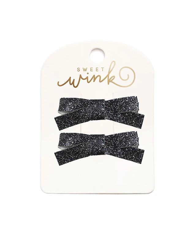 Sweet Wink Girls Black Glitter Bow Clip Set