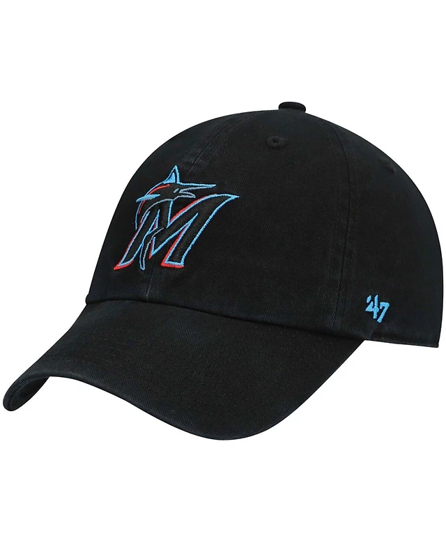 Boys Black Miami Marlins Team Logo Clean Up Adjustable Hat