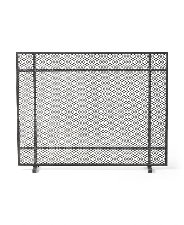 Streamdale Markus Modern Single Panel Black Brushed Silver Iron Firescreen
