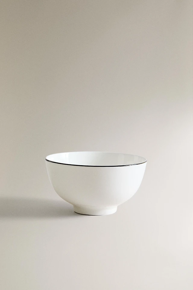 BONE CHINA DESSERT PLATE WITH BLACK RIM