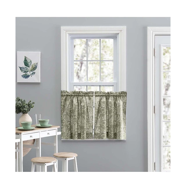 Ellis Curtain Lexington Leaf Pattern On Colored Ground Curtain Tiers 56 X22x24 X22 Sage
