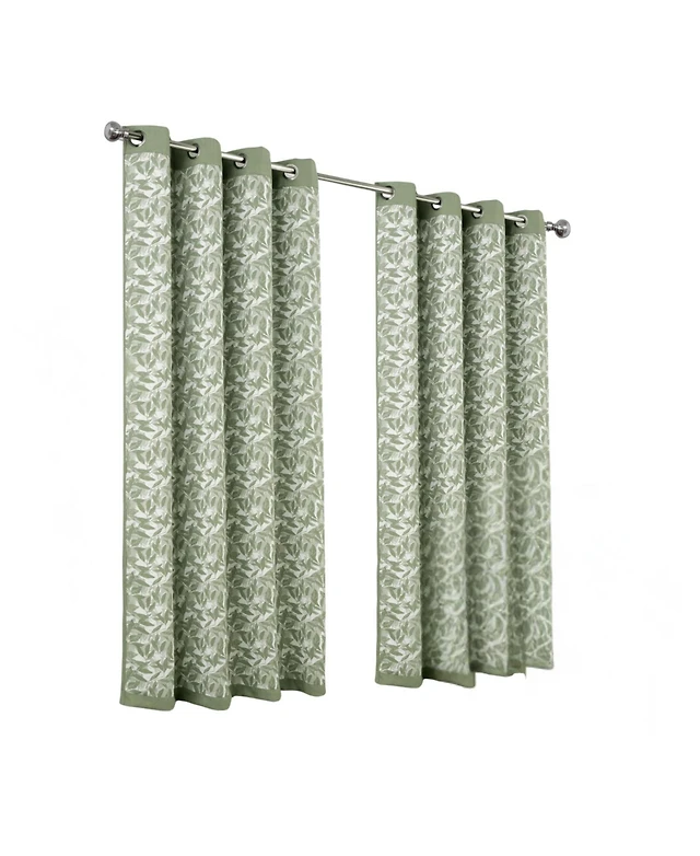 Kate Aurora Set of 2 Leeds Floral Leaves Embossed Light Filtering Grommet Top Window Curtain Panels